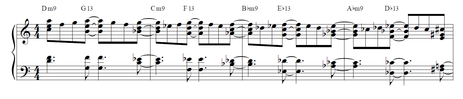 실제로 2-5-1(투 파이브 원)은 재즈 화성에서 가장 핵심적인 연결이며,